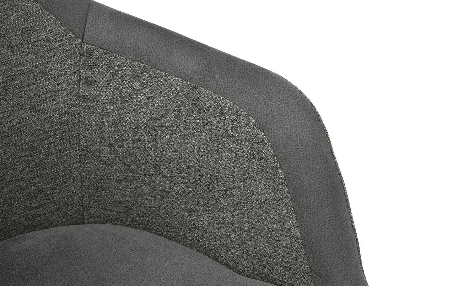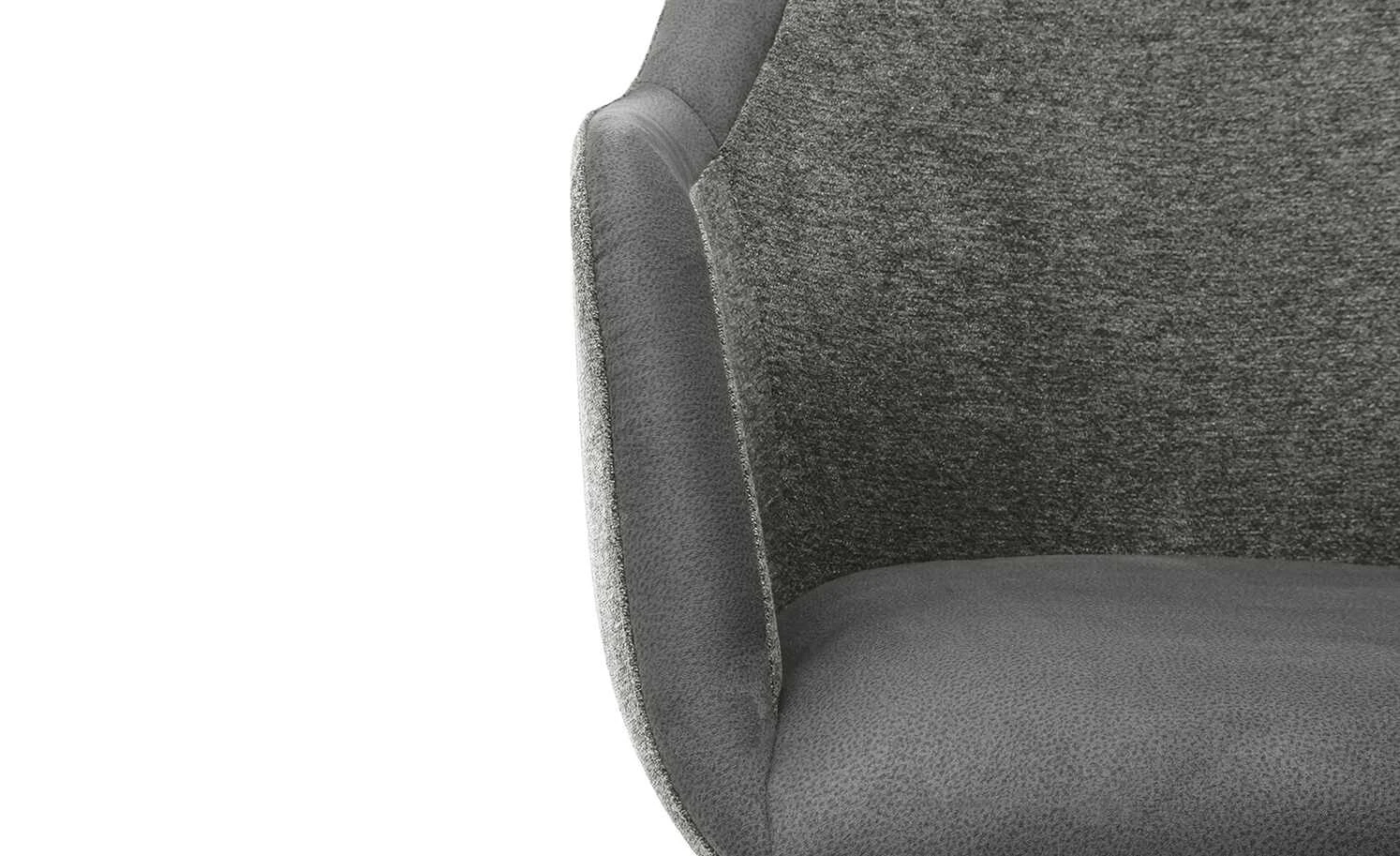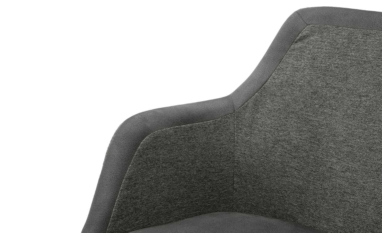 - Art des Bezuges: Rücken- und Armlehnen-Innen- sowie Außenfläche: melierter Webstoff / Sitz sowie Kassettenrahmen: genarbte Mikrofaser
