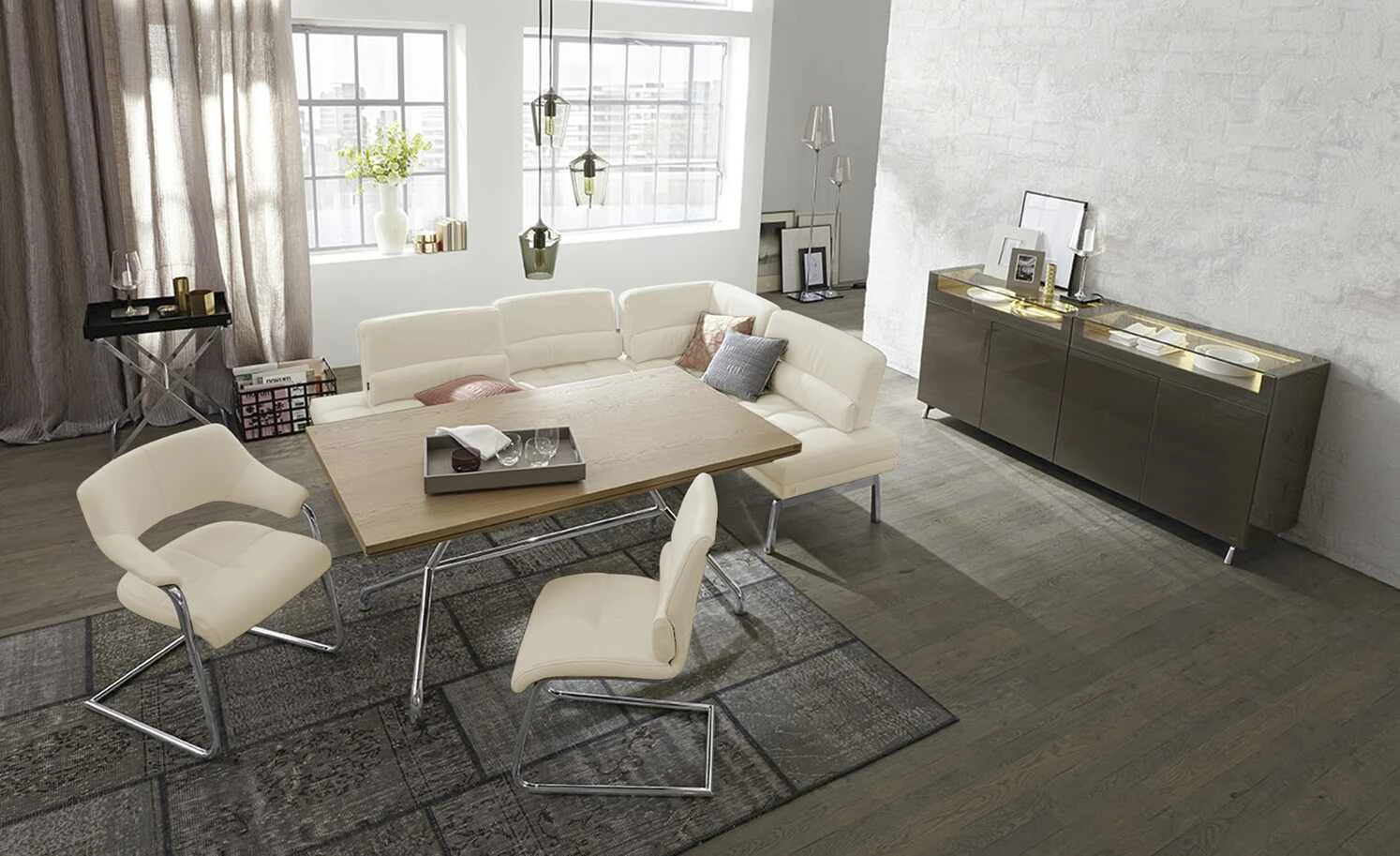 JOOP! Leder-Schwingstuhl Loft | Lava (Hellgrau)