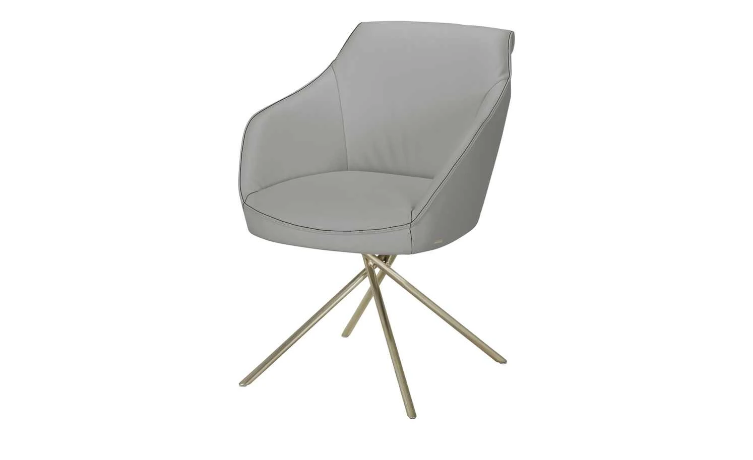 Mit dem Armlehnstuhl Dining System 1 holen Sie sich moderne Eleganz in Ihre Küche oder ins Wohn- und Speisezimmer. Die komfortabel gepolsterte Sitzschale steht auf verspielt arrangierten Metallfüßen aus satiniertem Nickel. Das Mikado-Gestell mündet in einer Drehvorrichtung, sodass sich die die Sitzschale kinderleicht drehen und in die gewünschte Position bringen lässt. Die Materialkombination aus Metall und seidenmattem Nappaleder sorgt für ein modernes Erscheinungsbild, das zu zahlreichen Einrichtungsstilen passt. Auch die Sitzhöhe von ca. 50 Zentimetern ist mit diversen Esstischen kompatibel. Unikate gefertigt in Bayern: Die Marke KOINOR steht für einzigartige Komfortfunktionen und individuelles Design. Unter Verwendung hochwertigster Materialien entstehen Möbel mit Vorzeigecharakter.