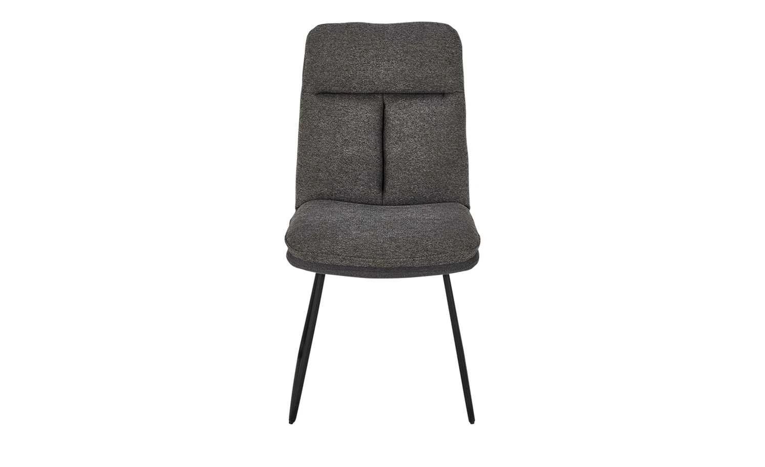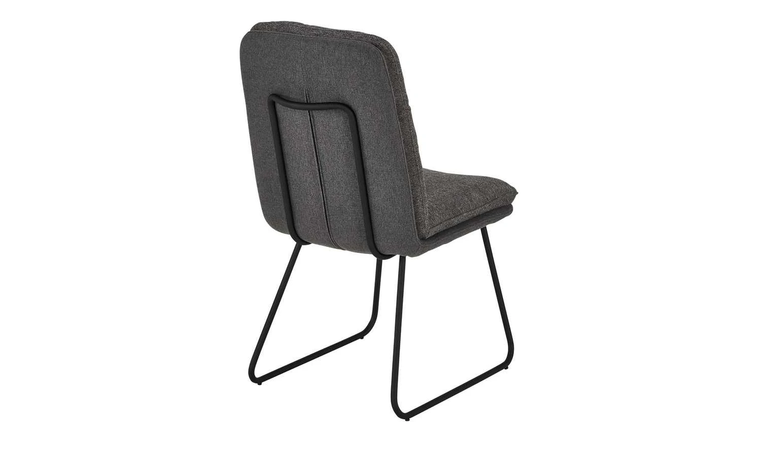 Durch seine extra dicke Polsterung ist der Kufenstuhl Delian besonders bequem. Die Rückenlehne hat zudem eine angenehme Komforthöhe, die Sie zum Anlehnen einlädt. Der Bezug besteht aus einem melierten Webstoff in Grau und Graublau, der dekorativ gesteppt worden ist. Zwei Kufen aus schmalem, aber stabilem Edelstahl sorgen für einen sicheren Stand des Stuhls.