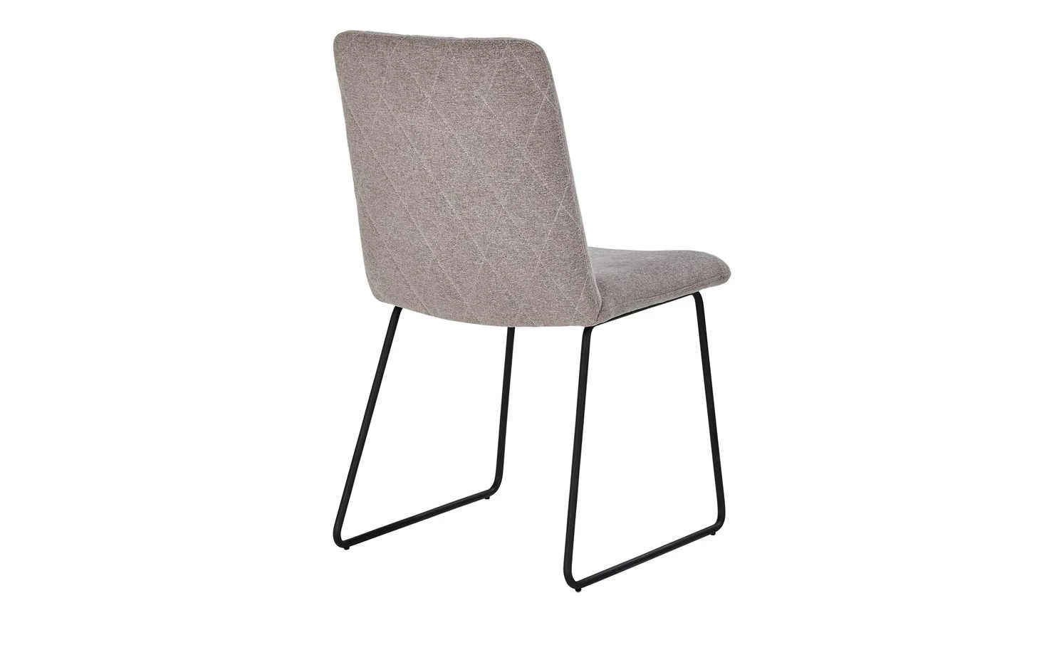 Der Kufenstuhl Samu spielt mit geometrischen Formen. Seine trapezförmigen schwarzen Metallkufen wirken minimalistisch und modern. Sie lassen die dick gepolsterte Sitzschale scheinbar schweben. Der pflegeleichte Bezugsstoff ist an der Rückenlehne rautenförmig gesteppt: Und das beidseitig. Samu vereint Komfort und Design und wird so zu einem attraktivem Charakterstuhl mit Retro-Note.