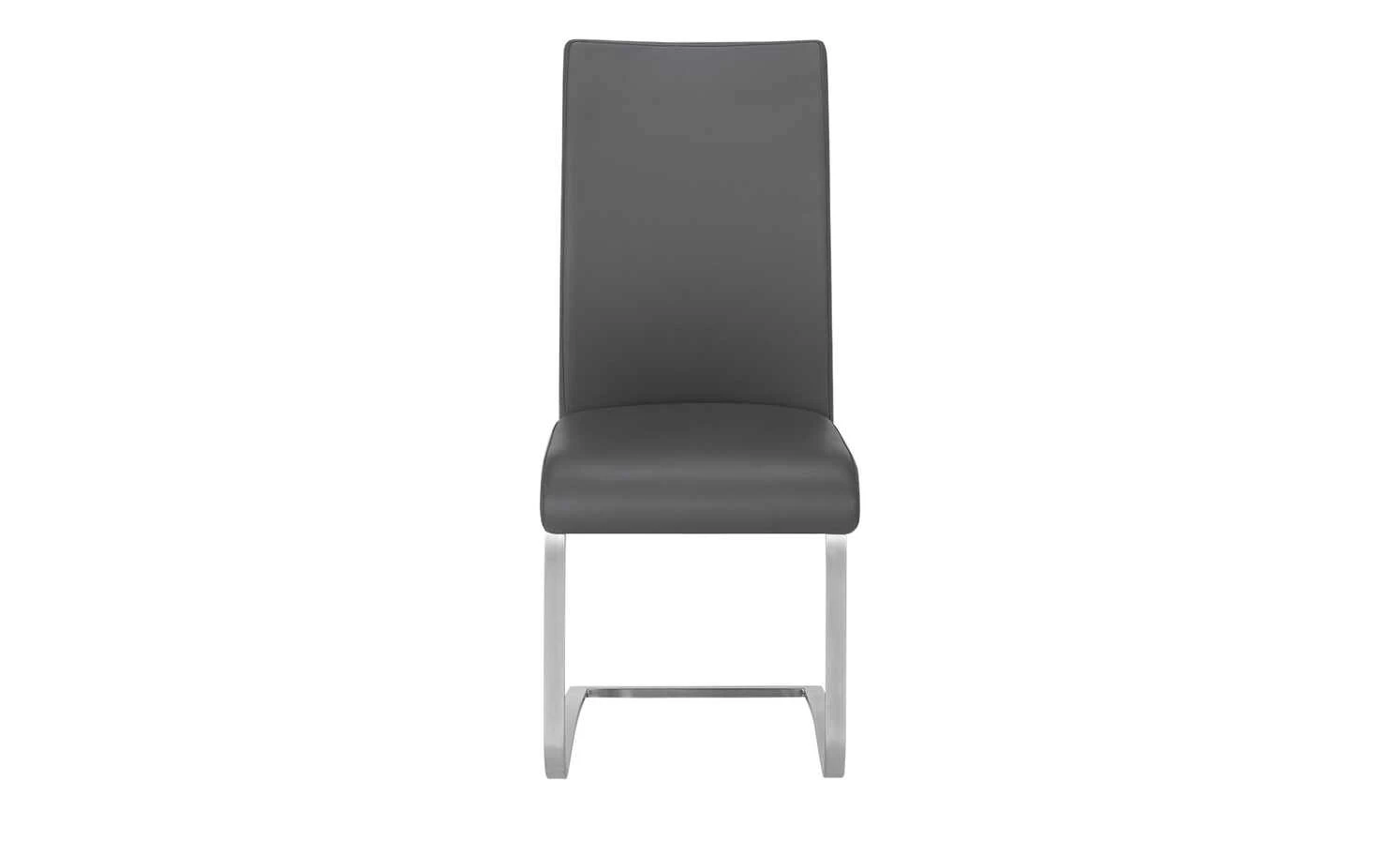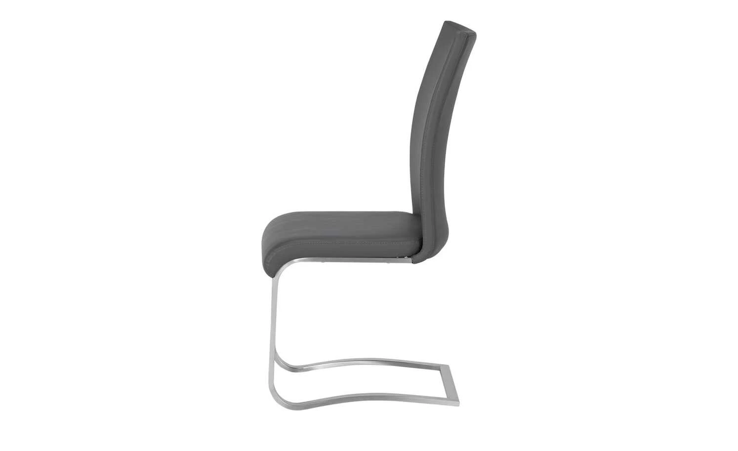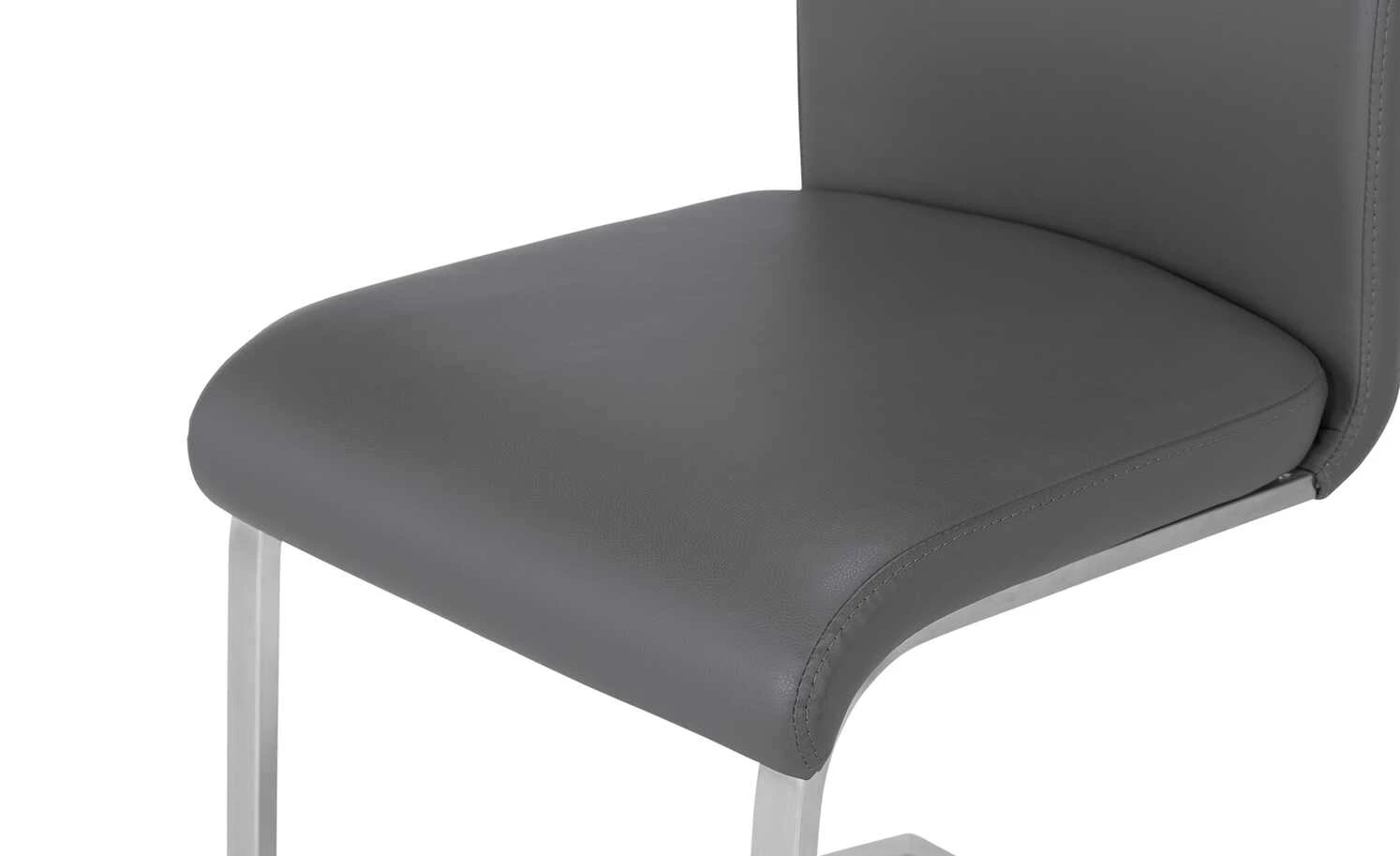 Sanft geformte Linien und ein schlankes, reduziertes Design verleihen dem Schwingstuhl Mike Stil und Leichtigkeit. Die geschwungene Rückenlehne, hochwertige Polsterung sowie die harmonisch abgerundete Sitzkante gewährleisten einen bequemen Sitzkomfort. Der Bezug ist aus hochwertigem und strapazierfähigem Kunstleder. Das Gestell ist aus einem Flachrohr aus Edelstahl. Die matt gebürstete Oberfläche gibt dem Stuhl den letzten Schliff.