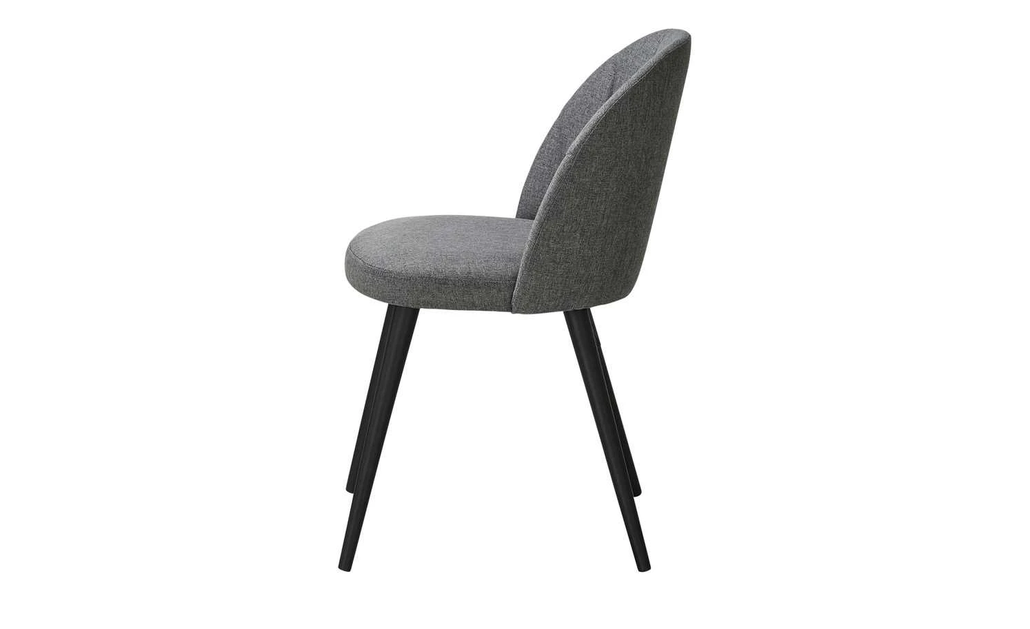 Der Polsterstuhl Domingo fügt sich in nahezu jeden Einrichtungsstil problemlos ein. Der dunkelgraue Bezug aus strapazierfähigem Webstoff ist an der Rückenlehne längs gesteppt. In Kombination mit den langen schwarzen Massivholzfüßen aus Buchenholz wirkt der Stuhl Domingo schlicht und modern zugleich. Für hohen Sitzkomfort sorgt die Schaumstoffpolsterung im Sitz- und Rückenbereich.