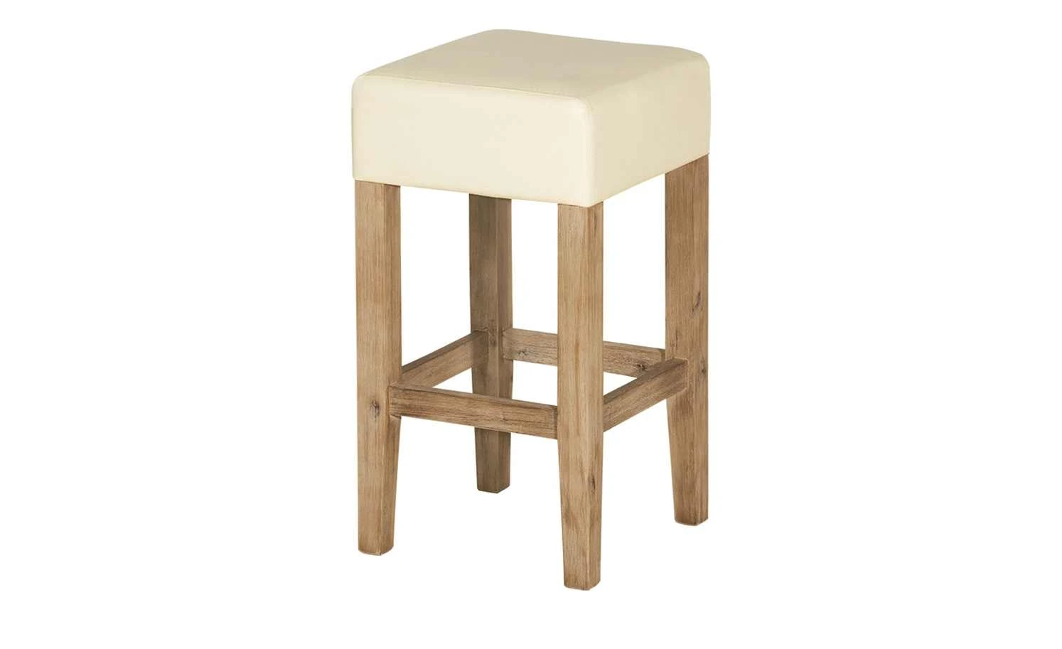 Passend zum Tresentisch ist der Barhocker Sahara, kann aber auch gut mit anderen Bartischen kombiniert werden. Das Gestell ist aus Akazienmassivholz und sorgt für einen sicheren und festen Stand. Die Sitzfläche ist mit einem Bezug aus Kunstleder ausgestattet. Dieses ist robuster und pflegeleichter als Echtleder. Der helle Cremeton passt gut zum gebürsteten und gebeizten Gestell. Für Komfort beim Sitzen wurde die Sitzfläche weich mit Schaumstoff gepolstert.